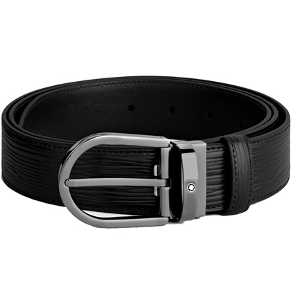 Черный кожаный ремень с подковообразной пряжкой 35мм от магазина премиальных ручек Premium Pens в Назране.